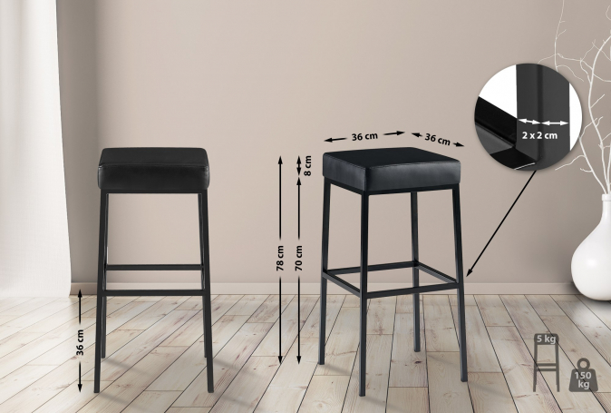2 ks / set barová židle Montreal 80 syntetická kůže, černá, černá | Černá | 4 385 Kč