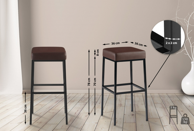 2 ks / set barová židle Montreal 80 syntetická kůže, černá, hnědá | Syntetická kůže | 37 cm | 37 cm | Hnědá | 5 Kg | 150 Kg | 37 x 37 cm | 4 094 Kč