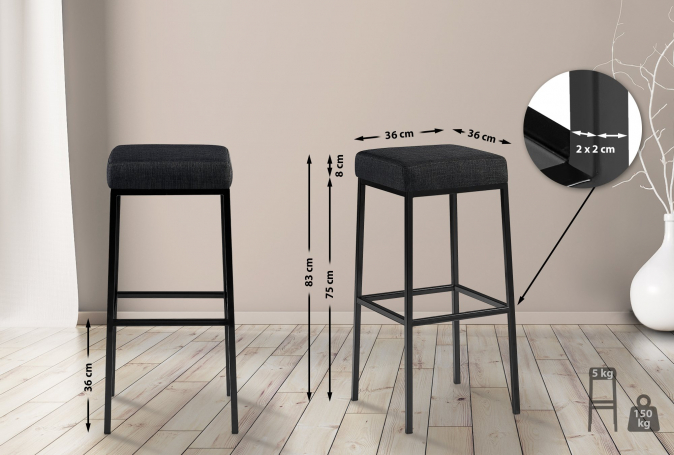 2 ks / set barová židle Montreal 85 látkový potah, černá, tmavě šedá | Tmavě šedá | 4 094 Kč