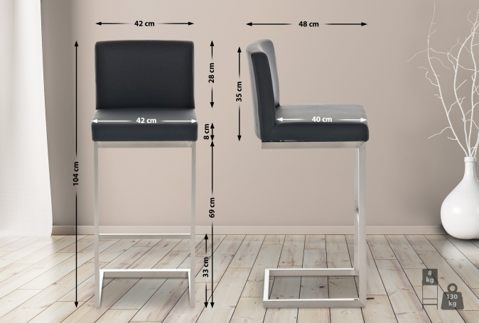 2 ks / set barová židle Paros syntetická kůže, černá | Černá | 6 447 Kč