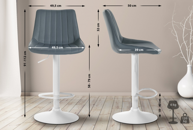 2 ks / set barová židle Toni syntetická kůže, bílá, šedá | 91 - 112 cm | Syntetická kůže | Kov / chrom | 58 - 79 cm | 49.5 cm | 50 cm | Šedá | 6 Kg | 49 x 39 cm | 32 cm | 3 962 Kč
