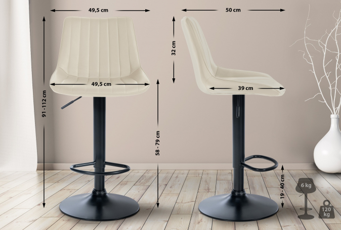 2 ks / set barová židle Toni syntetická kůže, černá, krémová | 91 - 112 cm | Syntetická kůže | Kov / chrom | 58 - 79 cm | 49.5 cm | 50 cm | Krémová | 6 Kg | 49 x 39 cm | 32 cm | 3 698 Kč