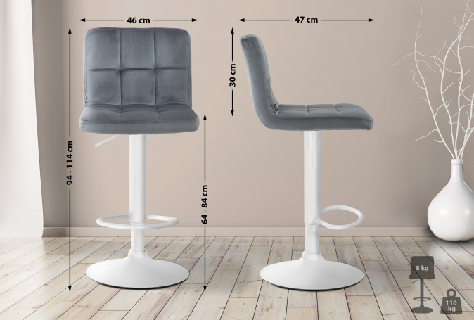 2 ks / set barová židle Veru samet bílá, tmavě šedá | Tmavě šedá | 5 665 Kč