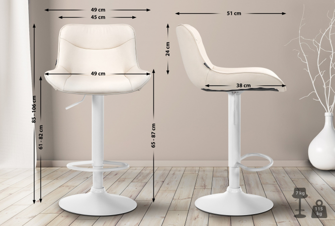 2 ks / set barová židle Voronei syntetická kůže, bílá, krémová | Krémová | 4 998 Kč