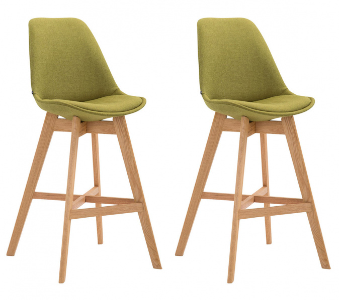 2 ks / set dřevěné barové židle Camile látkový potah, přírodní podnož / zelená | Zelená | 8 937 Kč