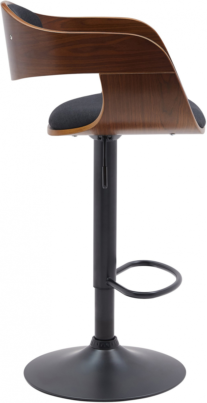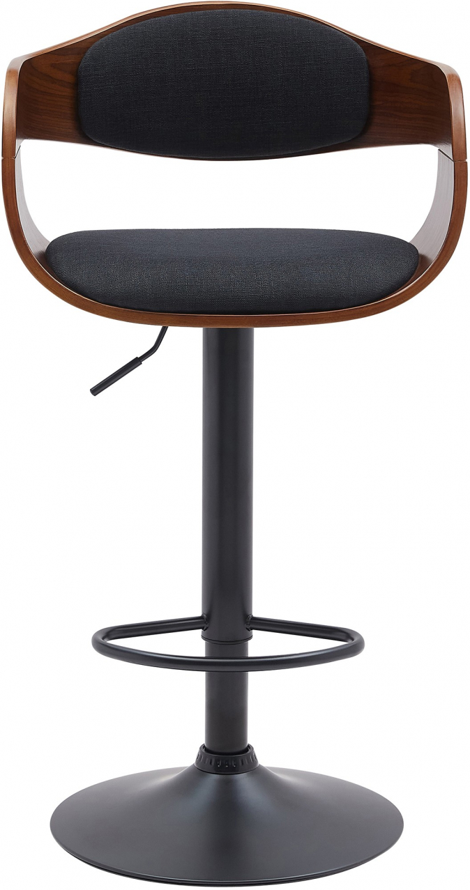 Barní stoličky stojí na robustních kovových rámech v matné černé barvě. Pomocí plynového zdvihu jsou barové stoličky plynule výškově nastavitelné, a lze je proto individuálně přizpůsobit jakékoli tělesné velikosti a výšce pultu. Integrované opěrky nohou přispívají k rovnému a vzpřímenému sezení.