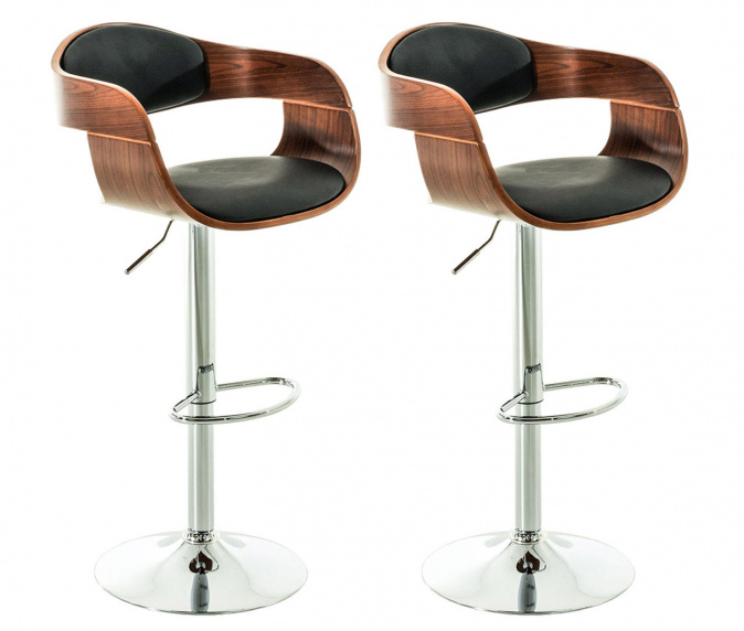 2 ks / set dřevěné barové židle Stona syntetická kůže, ořech/černá | 7 082 Kč