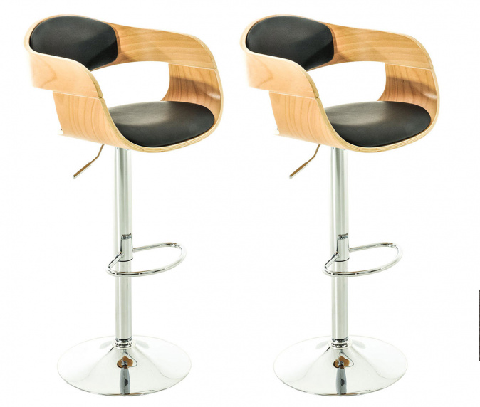 2 ks / set dřevěné barové židle Stona syntetická kůže, přírodní/černá