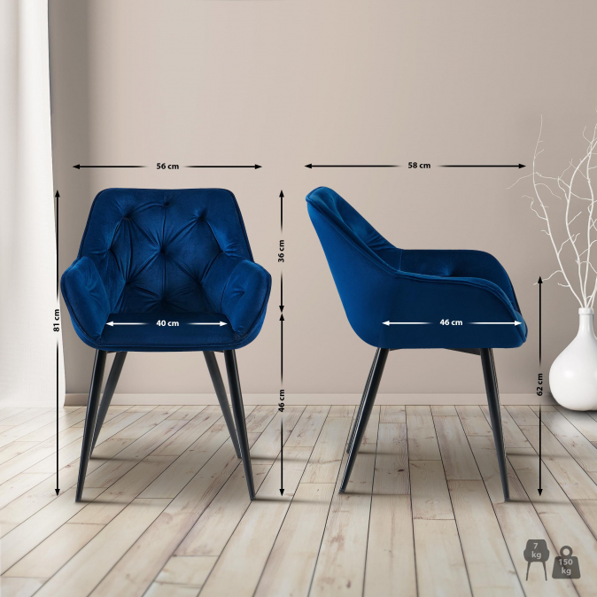Skořepiny sedáků i opěradel jsou po celé délce potaženy sametovým potahem, který se snadno udržuje. Elegantní ozdobné prošívání ještě více umocňuje vzhled čalouněných židlí.