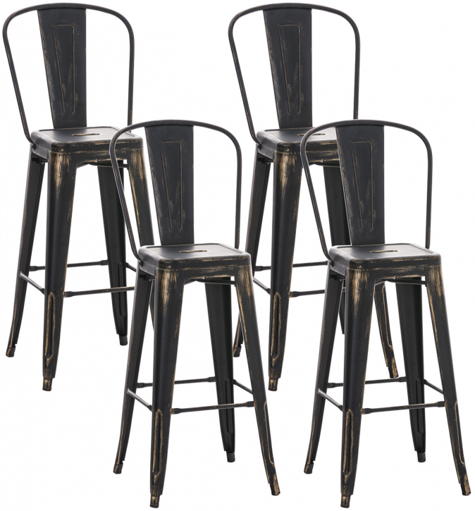 4 ks / set barová židle Aiden antik, černá-zlatá