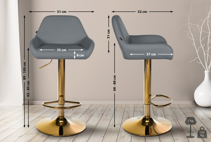 Barová židle Braga Gold syntetická kůže, šedá | Šedá | 2 640 Kč