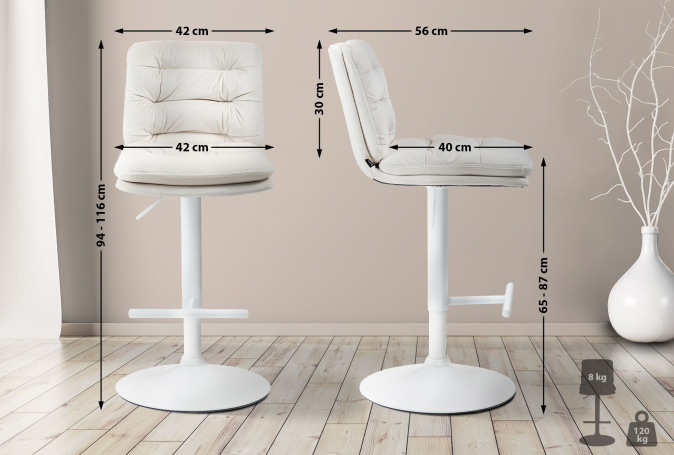 Barová židle Dakar samet bílá, krémová | Krémová | 2 640 Kč