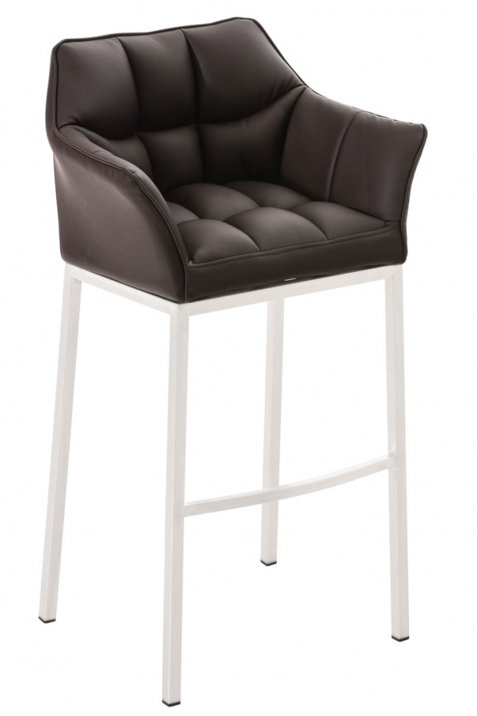 Povrch z umělé kůže je snadno udržovatelný a je k dispozici v různých barvách, což nabízí široké možnosti designu. Robustní a odolná čtyřnohá konstrukce zajišťuje stabilitu a ve středu podnože se nachází opěrka na nohy, která přispívá ke správnému držení těla při sezení. Barová židle je dostupná v provedení z nerezové oceli nebo lakovaného kovu v černé či bílé barvě.