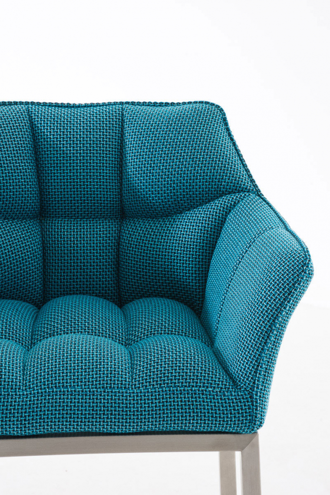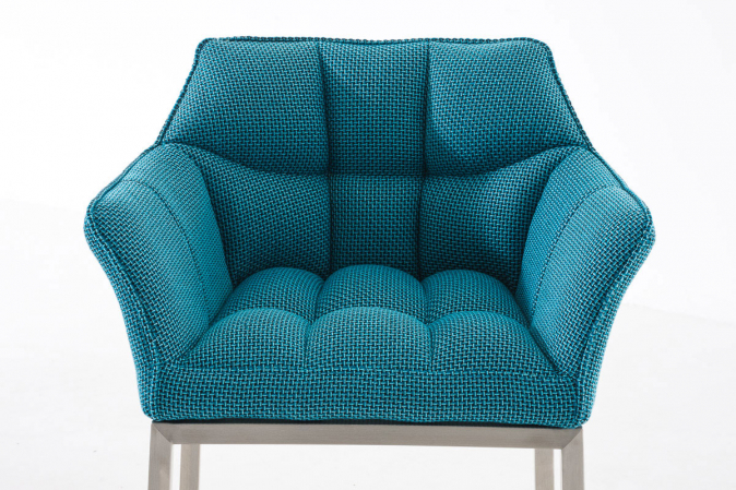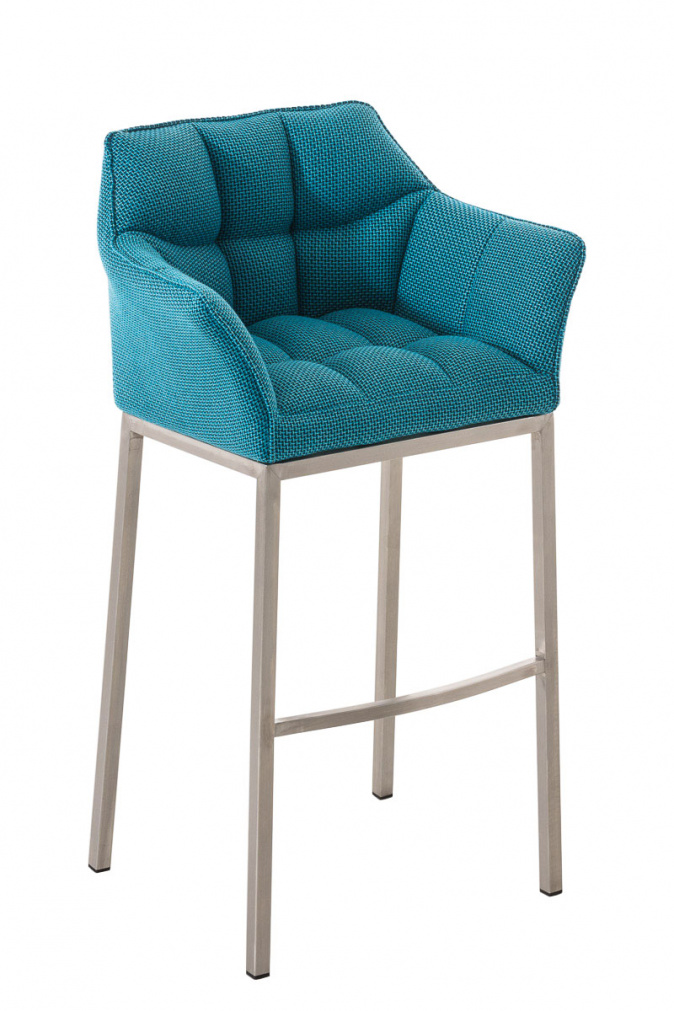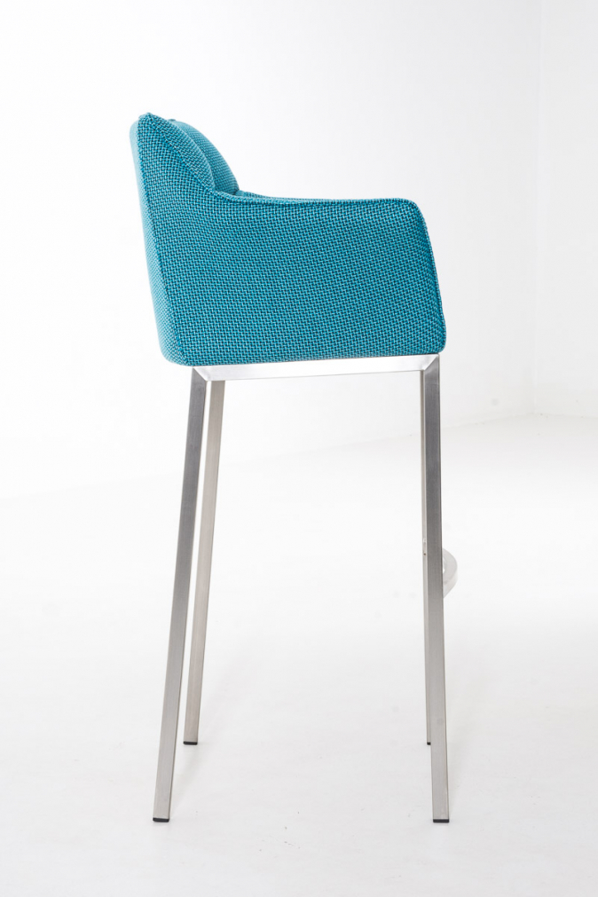Barová židle Deluso látkový potah - tyrkysová, podnož 4 nohy - nerez | 7 499 Kč