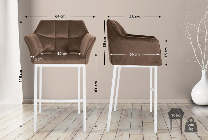 Barová židle Deluso podnož bílá / samet, hnědá | Hnědá | 8 499 Kč