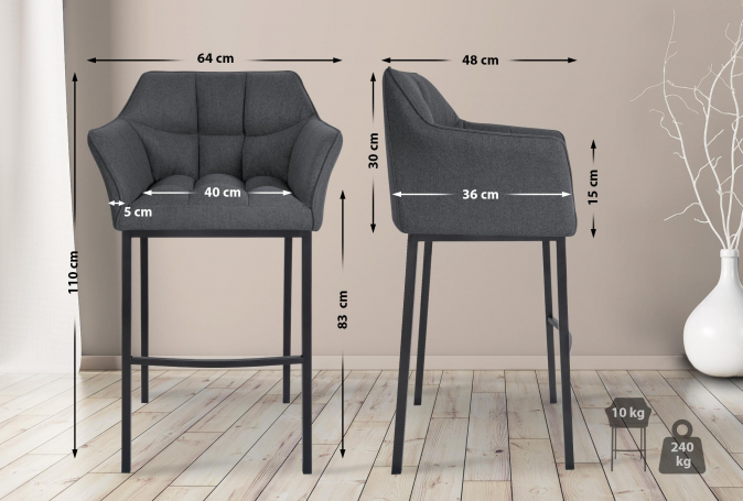 Barová židle Deluso zaujme moderním designem a mimořádně vysokou nosností. Díky výšce sedáku 83 centimetrů je barová židle ideální pro většinu pultů.