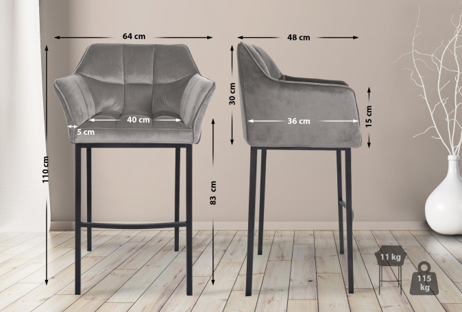 Barová židle Deluso podnož černá / samet, šedá | Šedá | 5 284 Kč