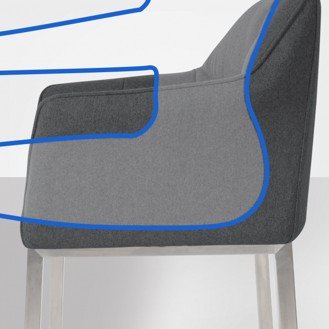 • Čalounění: měkce čalouněná skořepina sedáku a opěradla
