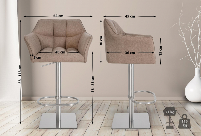 Barová židle Deluso podnož nerez / plstěný potah, taupe | Taupe | 6 473 Kč