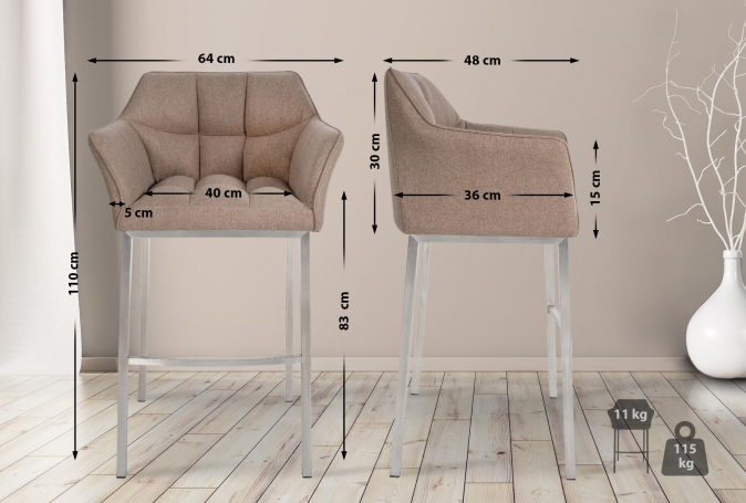 Barová židle Deluso podnož nerez / plstěný potah, taupe | Taupe | 5 813 Kč
