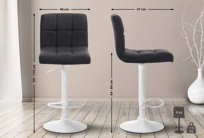Barová židle Dina látkový potah, bílá, tmavě šedá | Tmavě šedá | 3 080 Kč