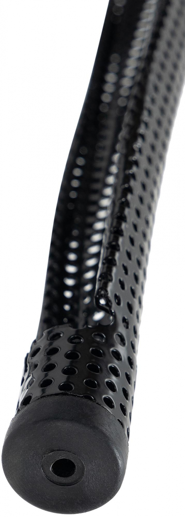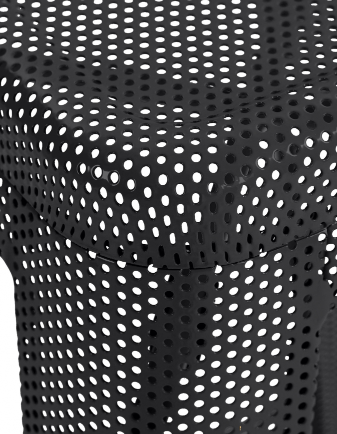 Tato stolička s perforovaným kovovým rámem kombinuje vizuální lehkost se stabilitou a unese až 120 kg. Nabízí také opěrku nohou pro lepší pohodlí při sezení. Je stohovatelná, a proto se hodí zejména na místa s omezeným prostorem. Výška sedáku je 77 cm, takže se vejde pod jakýkoli barový nebo vysoký stůl. Součástí balení jsou chrániče podlahy, které chrání podlahu před poškrábáním a zajišťují stabilitu. Materiál stoličky se snadno udržuje, což z ní činí praktický kus nábytku pro každodenní použití jak v domácnosti, tak v gastronomii. Její industriální design se hodí k moderním stylům vybavení.