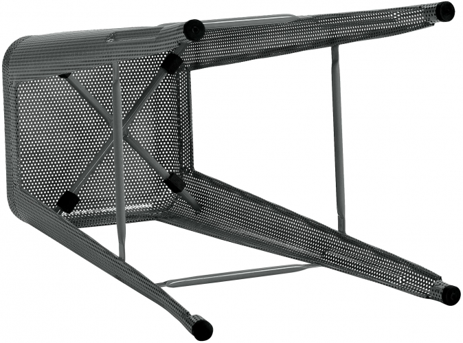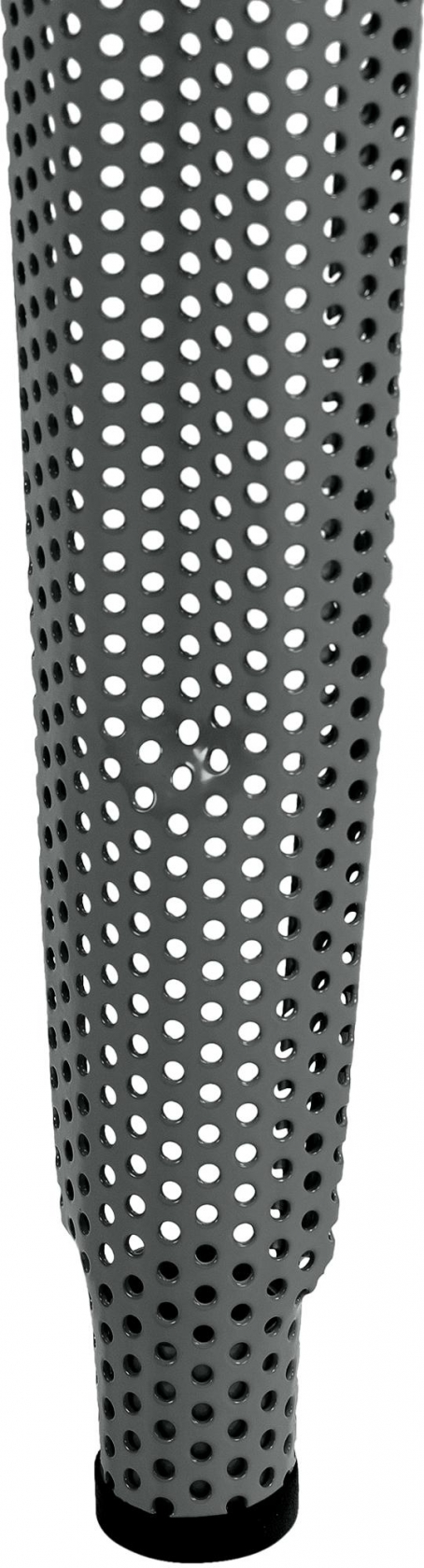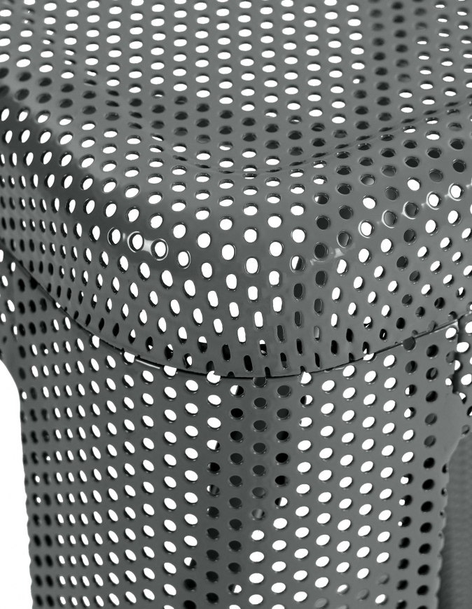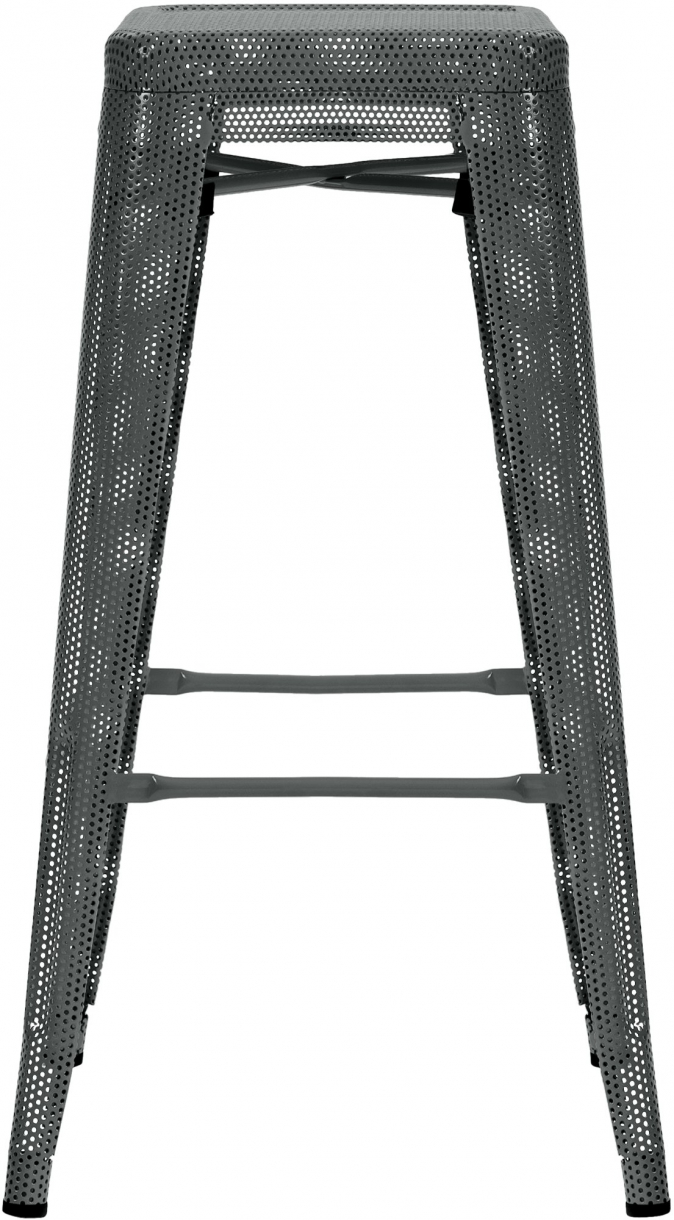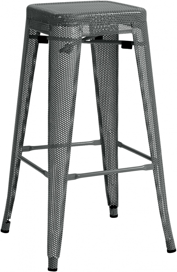 Tato stolička s perforovaným kovovým rámem kombinuje vizuální lehkost se stabilitou a unese až 120 kg. Nabízí také opěrku nohou pro lepší pohodlí při sezení. Je stohovatelná, a proto se hodí zejména na místa s omezeným prostorem. Výška sedáku je 77 cm, takže se vejde pod jakýkoli barový nebo vysoký stůl. Součástí balení jsou chrániče podlahy, které chrání podlahu před poškrábáním a zajišťují stabilitu. Materiál stoličky se snadno udržuje, což z ní činí praktický kus nábytku pro každodenní použití jak v domácnosti, tak v gastronomii. Její industriální design se hodí k moderním stylům vybavení.