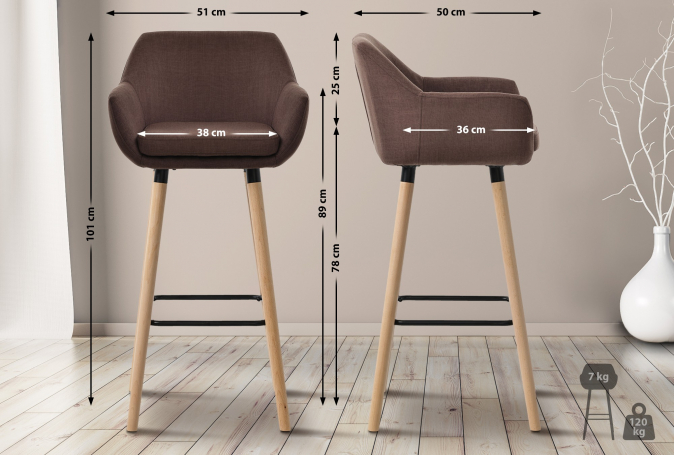 Barová židle Grant látkový potah, kávová | Kávová | 4 164 Kč