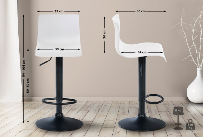 Barová židle Hover zaujme svým moderním designem. Hodí se téměř ke každému stylu a dodá každému baru sofistikovaný vzhled. Díky plynulému nastavení výšky lze barovou židli používat univerzálně a je vhodná pro všechny výšky barů. Ergonomicky tvarovaný sedák se přizpůsobí tělu. Opěradlo, otočný sedák a podnožka umožňují pohodlné sezení po celé hodiny. Plastový (polypropylenový) sedák a kovový rám se velmi snadno čistí.