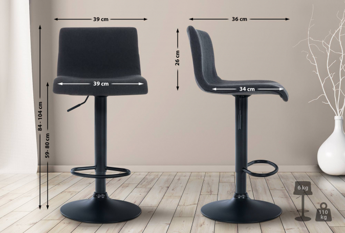 Barová židle Homer látkový potah, černá podnož, tmavě šedá | Tmavě šedá | 2 914 Kč