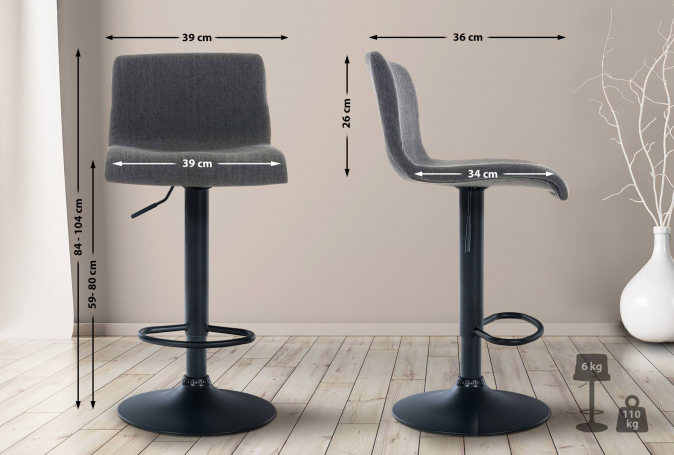 Barová židle Homer látkový potah, černá podnož, tmavě šedá | Tmavě šedá | 2 914 Kč