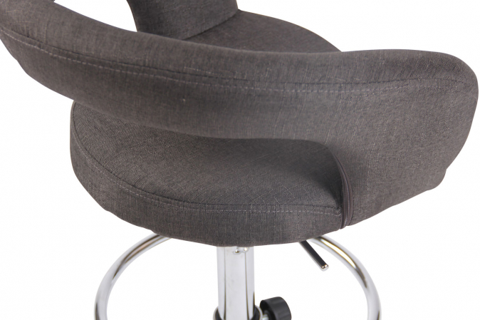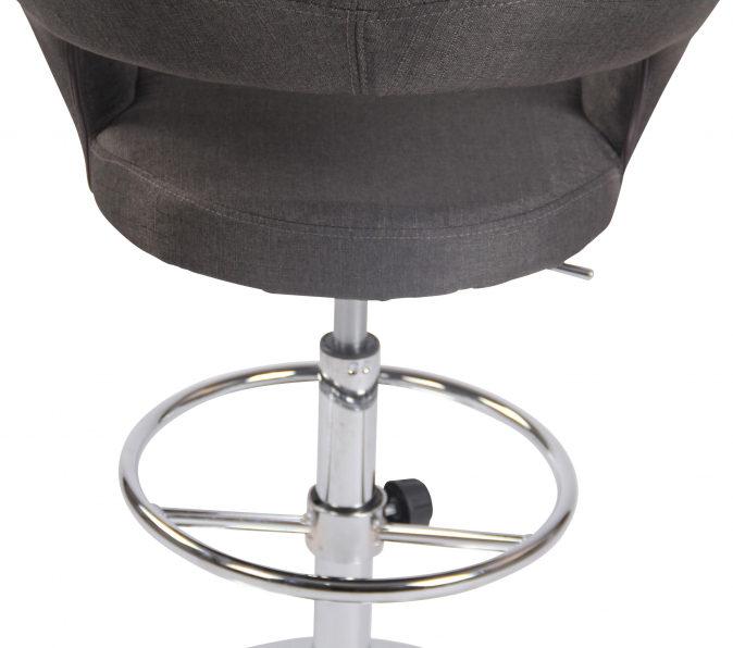 Tato barová židle je pevné a atraktivní sedadlo pro každodenní použití. Čalouněný sedák s celočalouněným opěradlem a opěrkou na nohy vám umožní pohodlné sezení po dlouhou dobu. Pultová stolička je výškově nastavitelná pomocí plynového zdvihu a lze ji otáčet o 360°. Kovová trubková podnož v chromovém vzhledu je vybavena chráničem podlahy, který zabraňuje poškrábání a poškození podlahy.