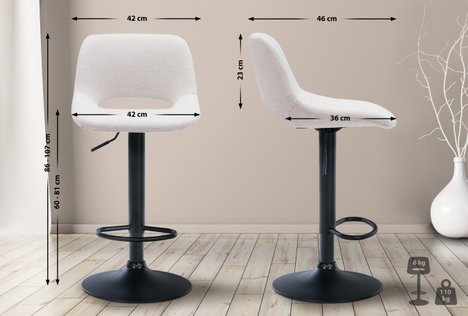 Integrovaná opěrka nohou poskytuje další pohodlí při sezení. V neposlední řadě je barová židle vybavena chrániči podlahy, takže jsou chráněny i citlivé povrchy.