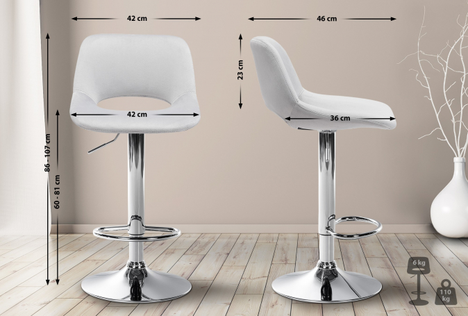 Integrovaná opěrka nohou poskytuje další pohodlí při sezení. V neposlední řadě je barová židle vybavena chrániči podlahy, takže jsou chráněny i citlivé povrchy.