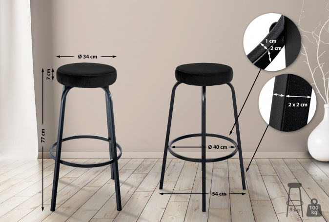 Barová židle Kamari samet, černá | Černá | 1 872 Kč