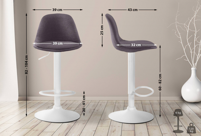 Barová židle Kiel látkový potah, bílá, tmavě šedá | Tmavě šedá | 2 705 Kč