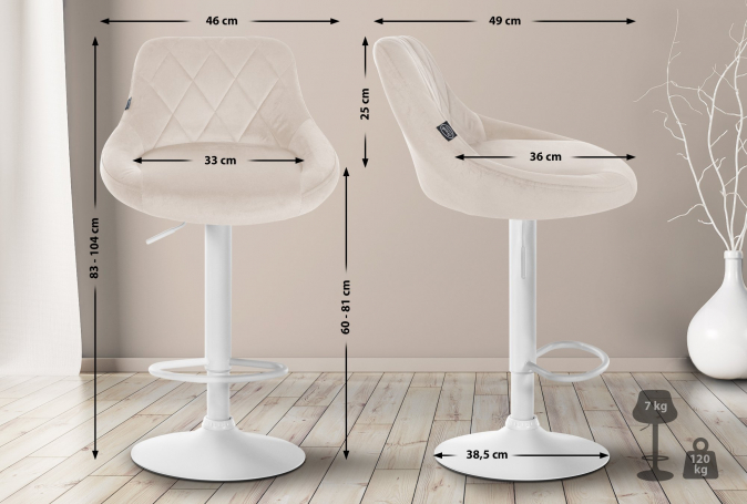 Barová židle Lazio samet bílá, krémová | Krémová | 3 289 Kč