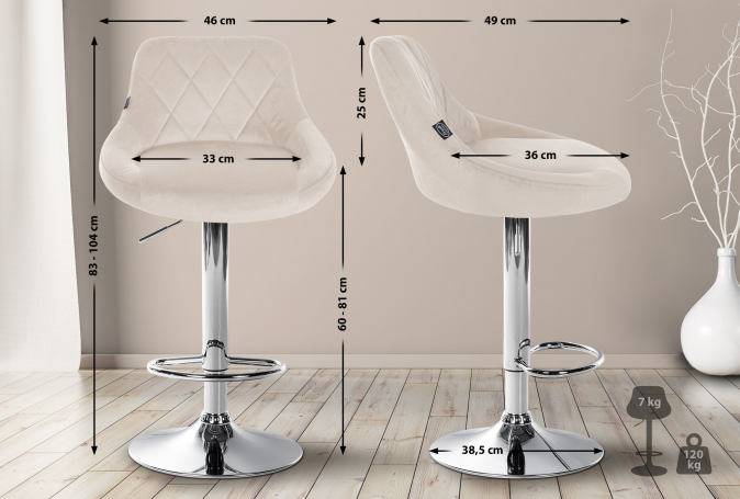 Barová židle Lazio samet chrom, krémová | Krémová | 3 122 Kč