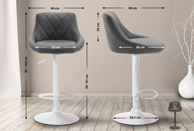 Díky plynovému pístu lze židli snadno a plynule výškově nastavit, takže je ideální pro různé výšky barových pultů. Integrovaná opěrka nohou se synchronně přizpůsobuje výšce sedáku a zajišťuje maximální pohodlí i při delším sezení.