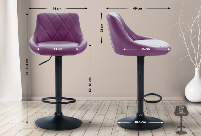 Barová židle Lazio syntetická kůže, černá, fialová | Fialová | 2 809 Kč