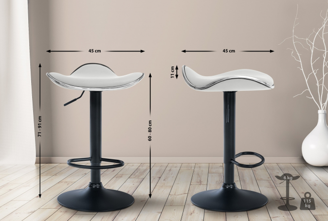 Sedák stoličky je čalouněný kvalitní umělou kůží, nabízí pohodlné polstrování a zakřivení skořepiny sedáku podporuje oblast kostrče. Robustní kovový rám je stabilní a pevný a díky otočnému mechanismu o 360 stupňů mimořádně flexibilní. Plynulá regulace výšky umožňuje individuální nastavení, zatímco integrovaná podnožka nabízí další pohodlí.