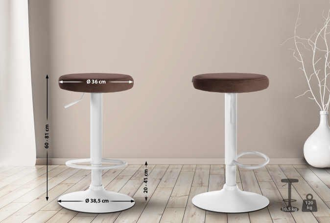 Barová židle Lenti samet bílá, hnědá | Hnědá | 1 847 Kč