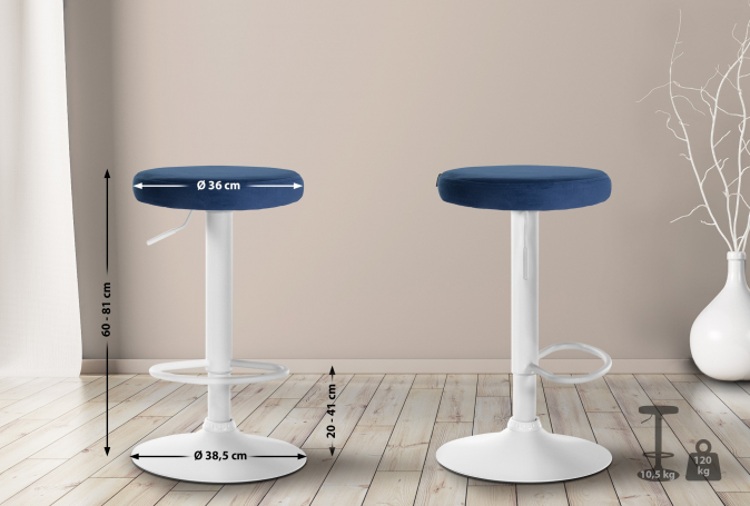 Barová židle Lenti samet bílá, modrá | Modrá | 1 847 Kč