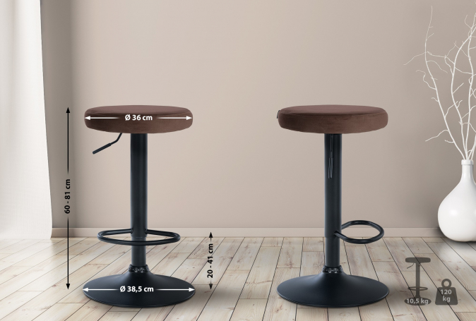 Barová židle Lenti samet černá, hnědá | 60 - 81 cm | 60 - 81 cm | 38.5 cm | 38.5 cm | Hnědá | 10.5 Kg | 120 Kg | 20 cm | 1 847 Kč