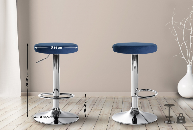 Barová židle Lenti samet chrom, modrá | Modrá | 1 847 Kč