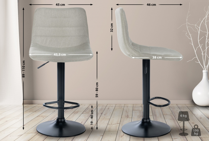 Barová židle Louxur látkový potah, Schwarz, krémová