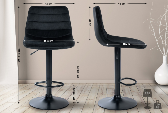 Barová židle Louxur samet černá, černá