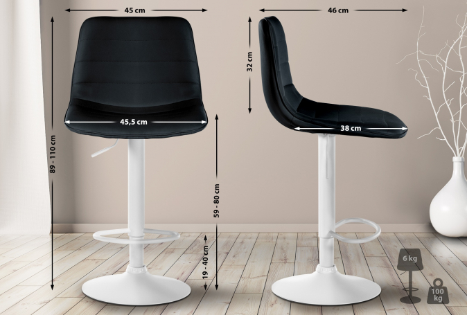 Barová židle Louxur syntetická kůže, bílá, černá | Černá | 1 847 Kč