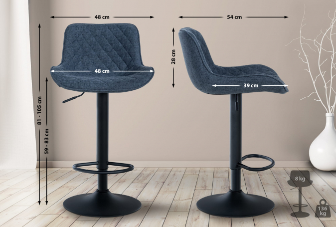 Barová židle Luxnos látkový potah, modrá | Modrá | 3 122 Kč