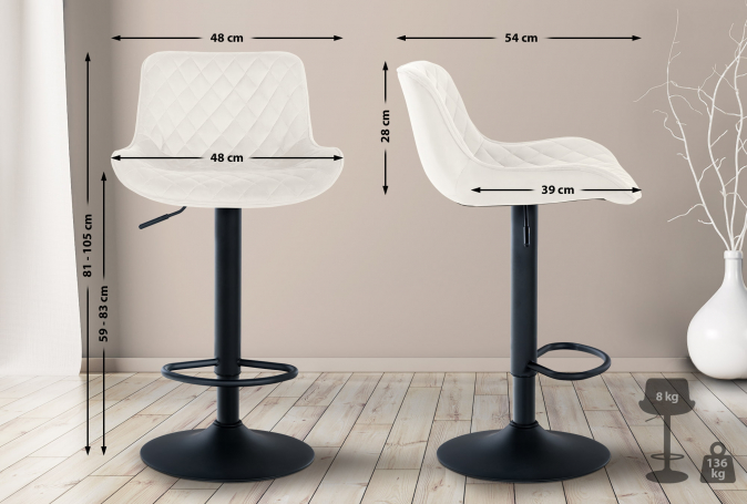Díky různým materiálům se tato barová židle skvěle hodí do obývacích pokojů, jídelen, kuchyní a dokonce i gastronomických zařízení. Díky širokému výběru materiálů a barev bude náš model ozdobou každého baru.